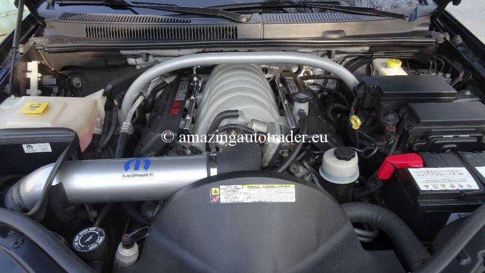 104820km. 8 cylindres 6,1 litres, 435cv, ABS, ESP, BAS, boite de vitesses automatique 5 rapports, intérieur cuir / alcantara noir, toit ouvrant, climatisation auto double zones, GPS, U connect, commande vocale, bluetooth, hifi radio / MP3 / CD / AUX in / USB, lecteur DVD avec casques sans fil, régulateur de vitesse, ordinateur de bord, alarme, sièges électriques sport chauffants à mémoires conducteur et réglages lombaires, sièges arrière chauffants, radars de stationnement AV & AR, caméra de recul, détecteur de pluie, phares xénons, feux de jour, rétroviseurs rabattables dégivrant conducteur, prédisposition téléphone, volant cuir réglable multifonctions, rétroviseur intérieur électrochromatique, réglage pédalier électrique, 4 vitres électriques teintées (surteintées arrière), rideaux de vitres arrière, déflecteurs de vitres, airbags, fermeture centralisée avec télécommande, contrôle pression des pneus, banquette arrière rabattable 2/3-1/3, antibrouillards Av & Ar, accoudoirs Av & Ar, double tapis, fixations sièges enfants Isofix, ressorts suspension courts Eibach, kit admission directe Mopar, ligne d’echappement Flowmaster, freins Brembo, tapis de coffre, grille chien, cache bagages, jantes 22′ titane doré (265/35/22 et 315/30/22), Année : 2008. Couleur : Noir Métal